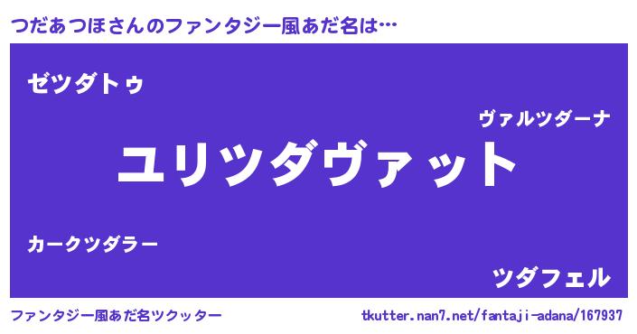 | 肩書あだ名 | 『つだあつほ中佐』『つだあつほ総統』 |