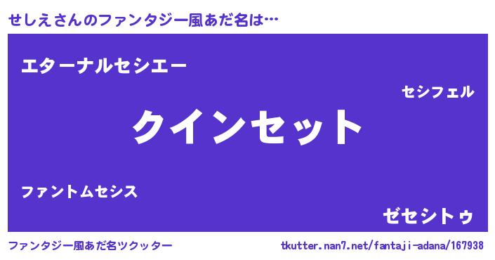 | 自動車の名前っぽいあだ名 | 『フィッセ』『セスラー』『プリセシ』 |