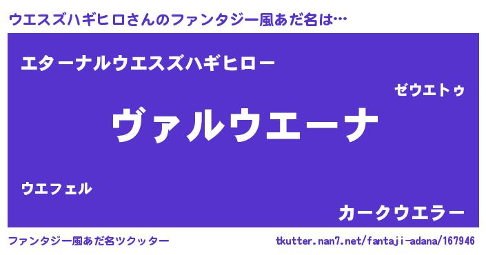 | 男性向けラノベタイトル風あだ名 | 『この素晴らしい世界にウエスズハギヒロを!』 |