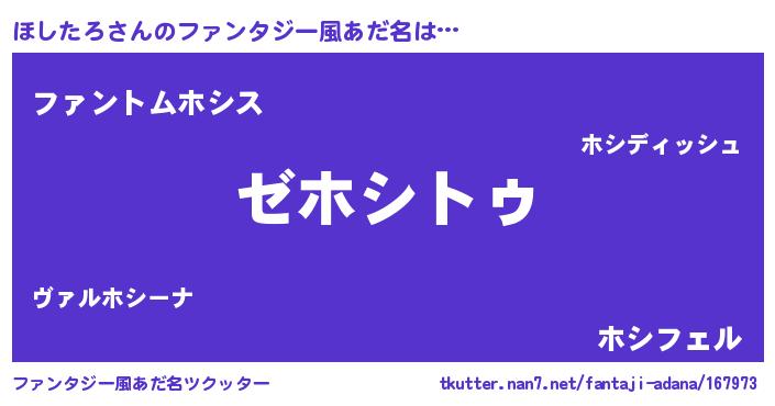 | 男性向けラノベタイトル風あだ名 | 『Re:ほしたろから始める異世界生活』 |