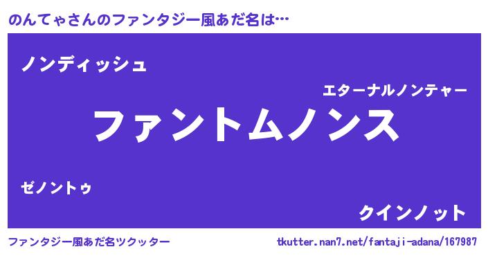 | ヒーロー風カッコイイあだ名 | 『幻影騎士ノン』『ネオノンテャ』 |
