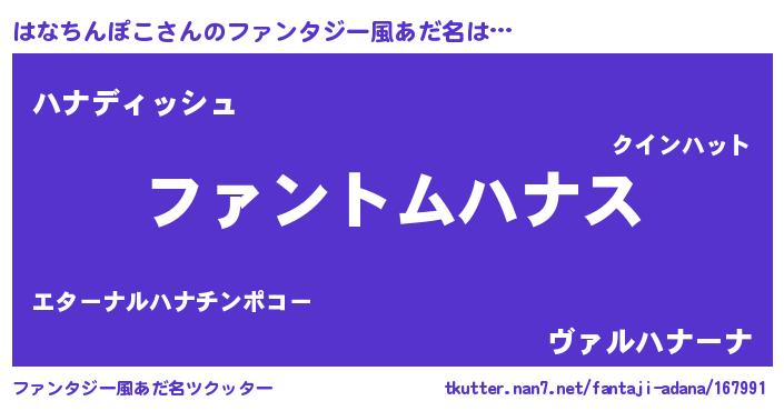 | ヘコむあだ名 | 『はなぷりん』『はなちんぽこ(遠い目)』 |