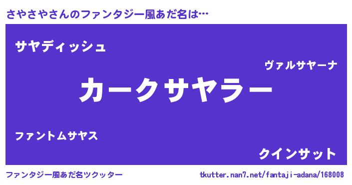 | ヘコむあだ名 | 『さやさや(小並感)』『さやっ子』 |
