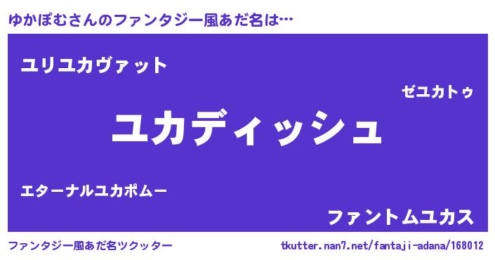 | ヘコむあだ名 | 『ゆかぽむ(苦笑)』『ゆかっちょ』 |
