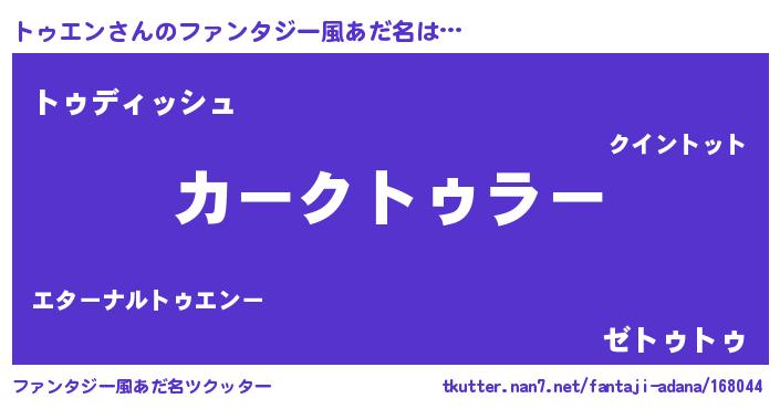 | 意味不明あだ名 | 『永久保存トゥエン』『自称トゥエン』 |
