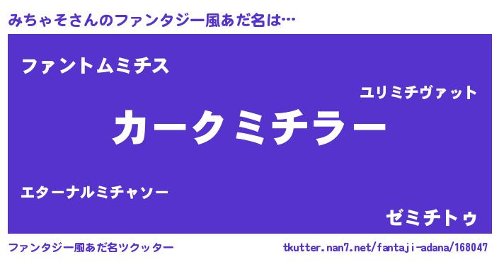 | 胡散臭い通販商品みたいなあだ名 | 『信頼と実績のサプリメント…その名も「みちゃそ」』 |