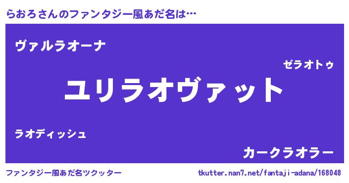 | 男性向けラノベタイトル風あだ名 | 『らおろ~年齢イコール彼女いない歴の魔法使い~』 |