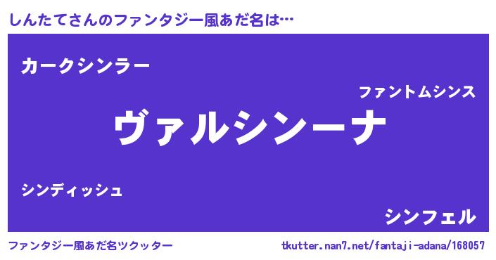 | 男性向けラノベタイトル風あだ名 | 『魔弾の王としんたて』 |