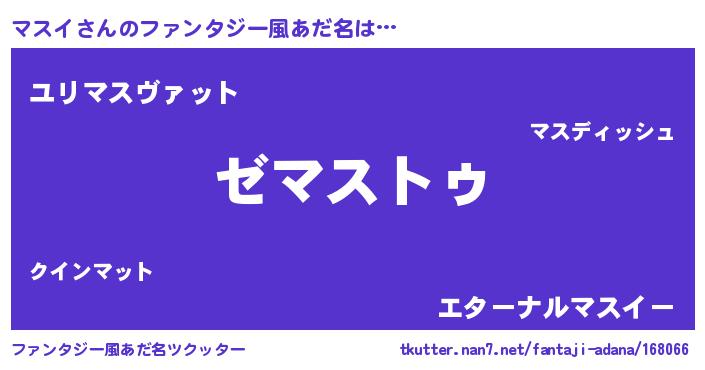 | 意味不明あだ名 | 『自称マスイ』『めかぶ科マスイ属』 |