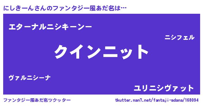 | 男性向けラノベタイトル風あだ名 | 『ノーゲーム・ノーニシキーン』 |
