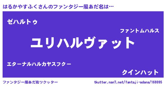 | 男性向けラノベタイトル風あだ名 | 『ハルカヤスフクスレイヤー』 |