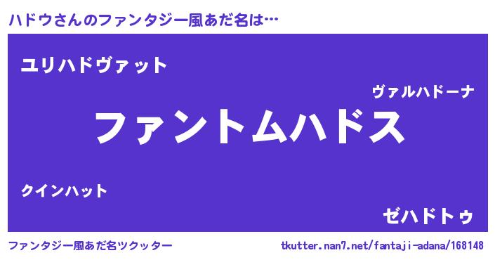 | ヒーロー風カッコイイあだ名 | 『炎刃騎士ハド』『超時空戦士ハドウ』 |