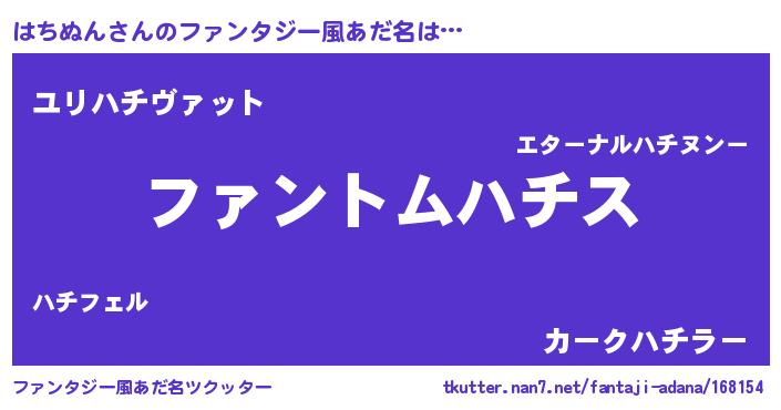 | 女子向けラノベタイトル風あだ名 | 『はちぬんの卵を拾いまして』 |