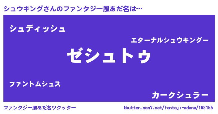 | 伝説のあだ名 | 『聞きしに勝る吟遊詩人シュウキング』 |