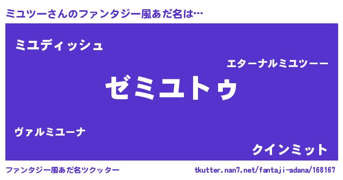 | 意味不明あだ名 | 『自称ミユツー』『永久保存ミユツー』 |