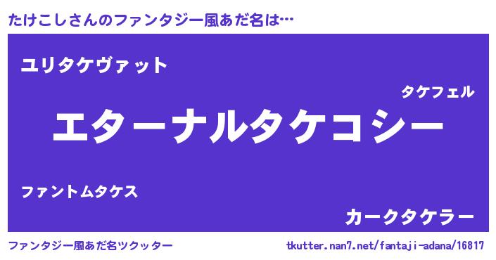 | ポケモン風あだ名 | 『タケゴンZ』『タケコダネ』 |