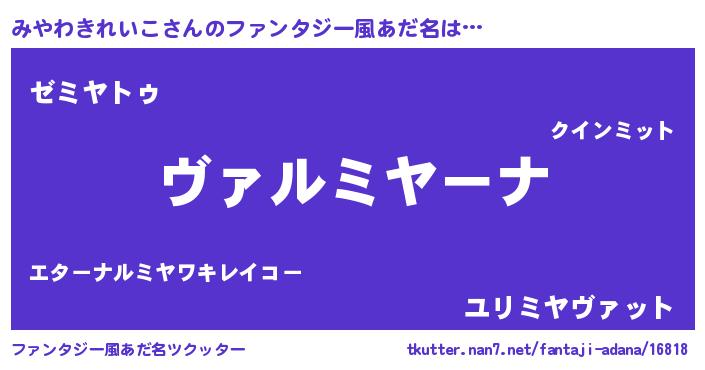 | ヒーロー風カッコイイあだ名 | 『仮面ミヤダー』『ネオミヤワキレイコ』 |