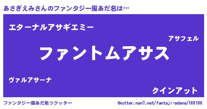 | ヒーロー風カッコイイあだ名 | 『天弓騎士アサ』『正義の使者あさぎえみ』 |