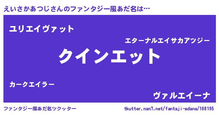 | ヒーロー風カッコイイあだ名 | 『慈愛の使者えいさかあつじ』 |