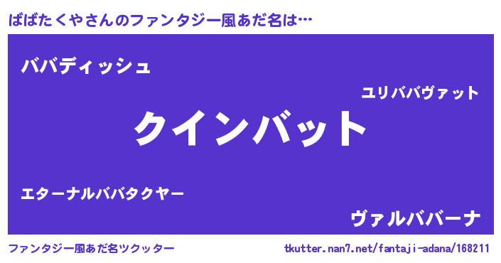 | 女子向けラノベタイトル風あだ名 | 『ばばたくや恋絵巻』 |