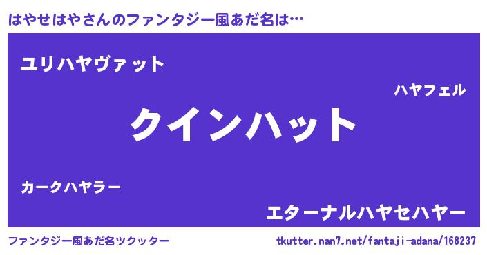 | ヒーロー風カッコイイあだ名 | 『友情の使者はやせはや』『仮面ハヤダー』 |