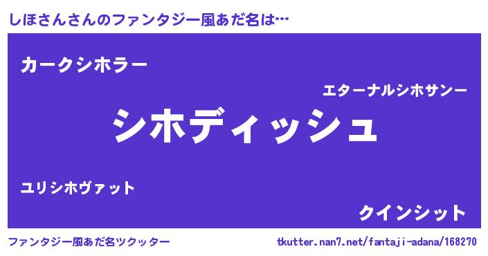 | ヘコむあだ名 | 『しほさん(笑)』『なまこ酢』 |