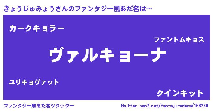 | 男性向けラノベタイトル風あだ名 | 『魔弾の王ときょうじゅみょう』 |