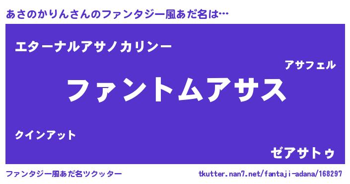 | ヒーロー風カッコイイあだ名 | 『幻影騎士アサ』『スーパーアサノカリン』 |