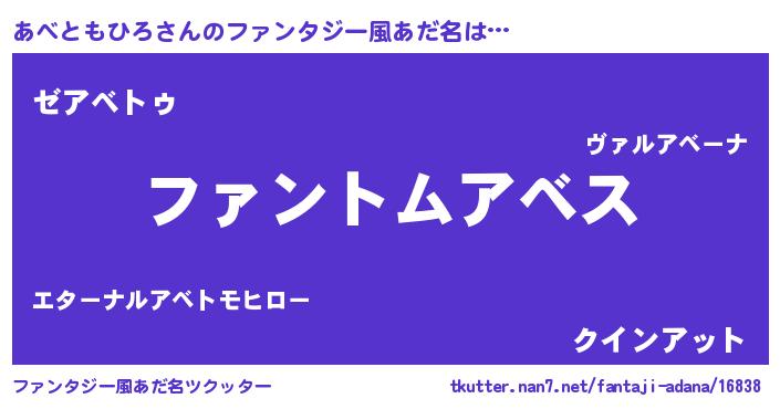 | 男性向けラノベタイトル風あだ名 | 『あべともひろの嫁は女の子じゃないと思った?』 |