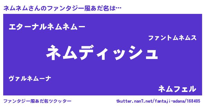 | 胡散臭い通販商品みたいなあだ名 | 『来世でも幸せになれる健康食品…その名も「ネムネム」』 |