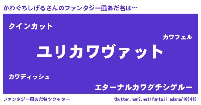 | 男性向けラノベタイトル風あだ名 | 『カワグチシゲルスレイヤー』 |