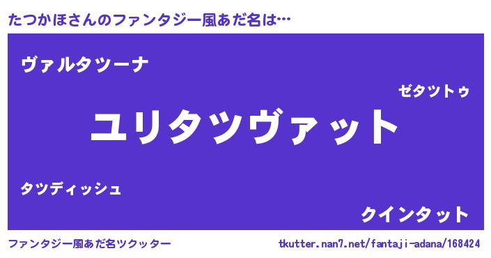 | 男性向けラノベタイトル風あだ名 | 『たつかほ~年齢イコール彼女いない歴の魔法使い~』 |