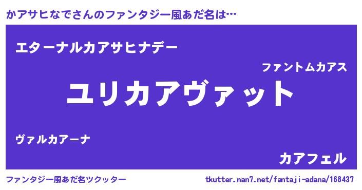 | 男性向けラノベタイトル風あだ名 | 『転生したらかアサヒなでだった件』 |