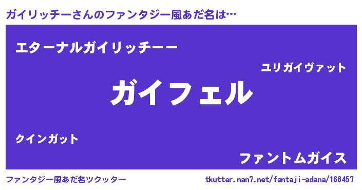 | 欧米人風あだ名 | 『マイケルガイリッチー』 |