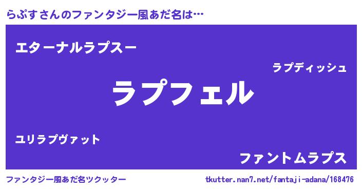 | ポケモン風あだ名 | 『ラプチュウ』『ラプゴンZ』 |