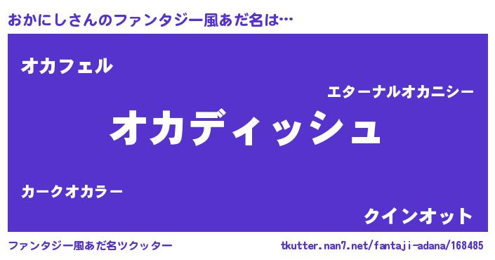 | 男性向けラノベタイトル風あだ名 | 『おかにしという概念が存在しない退屈な世界 』 |