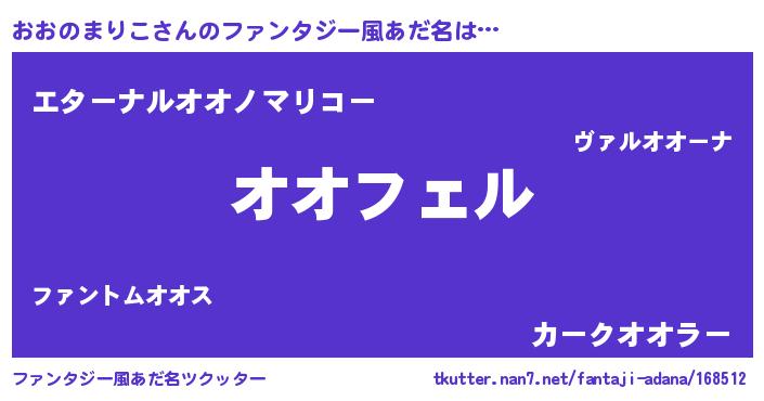 | 女子向けラノベタイトル風あだ名 | 『(仮)おおのまりこのやんごとなき事情』 |