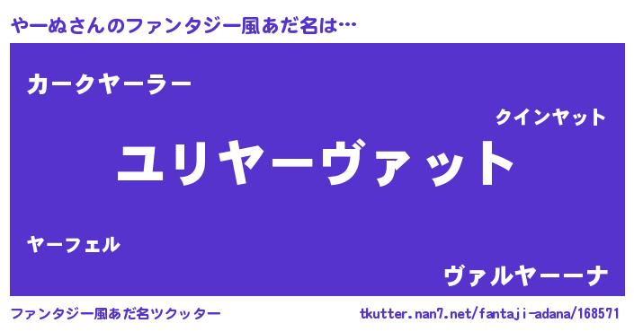 | 男性向けラノベタイトル風あだ名 | 『転生したらやーぬだった件』 |