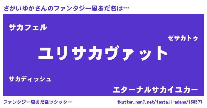 | 女子向けラノベタイトル風あだ名 | 『さかいゆかの玉の輿計画!』 |