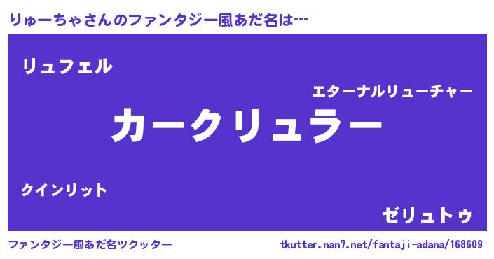 | 男性向けラノベタイトル風あだ名 | 『緋弾のリューチャ』『りゅーちゃの憂鬱』 |