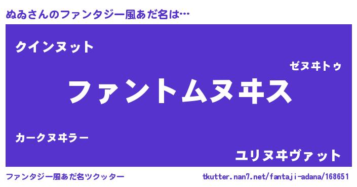 | ヒーロー風カッコイイあだ名 | 『幻影騎士ヌヰ』『天空の使者ぬゐ』 |