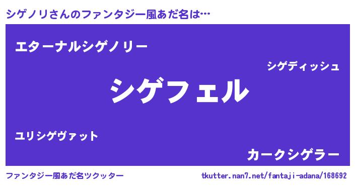 | 男性向けラノベタイトル風あだ名 | 『シゲノリアートオンライン』 |