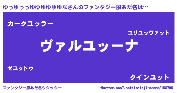 | 男性向けラノベタイトル風あだ名 | 『魔弾の王とゆっゆっっゆゆゆゆゆゆな』 |