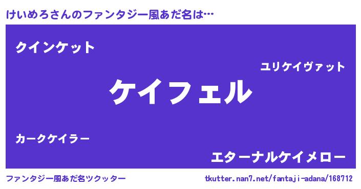 | 意味不明あだ名 | 『ペロリンけいめろ』『永久保存けいめろ』 |