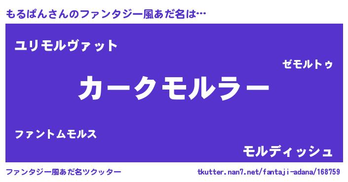 | ヘコむあだ名 | 『もるぱん(苦笑)』『もるを』『牛乳』 |