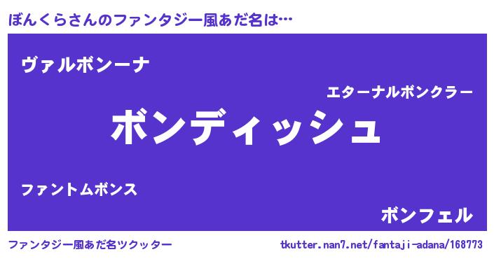 | 意味不明あだ名 | 『永久保存ぼんくら』『ペロリンぼんくら』 |