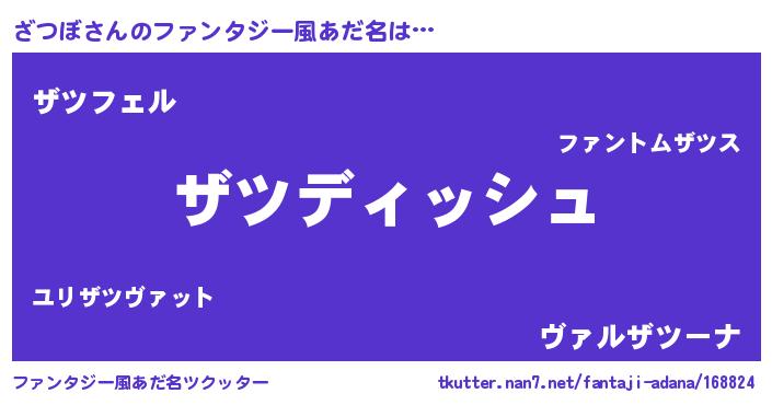 | 男性向けラノベタイトル風あだ名 | 『ざつぼという概念が存在しない退屈な世界 』 |
