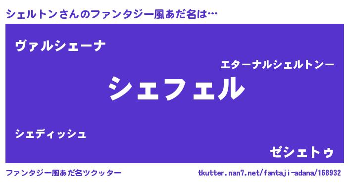 | 意味不明あだ名 | 『ペロリンシェルトン』『自称シェルトン』 |