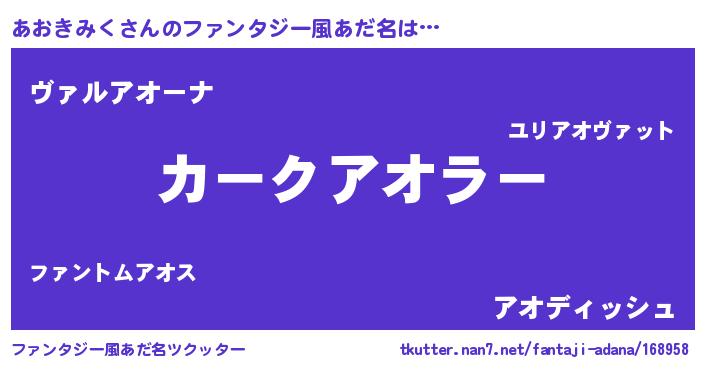 | 意味不明あだ名 | 『住所不定無職あおきみく(93歳)』 |