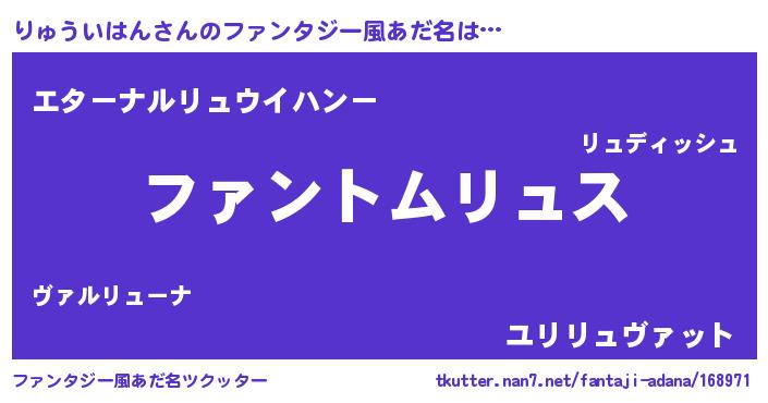 りゅういはんさんのファンタジー風あだ名をツクッター!
